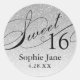 Cette étiquette de faveur de paillettes ombrées tendance comporte de fausses paillettes scintillantes, "Sweet 16" tourbillonnant et votre personnalisation. Ajoutez votre texte personnalisé à l'aide du formulaire de modèle. Des options supplémentaires pour le texte et la mise en page sont disponibles si vous choisissez l'option "personnaliser davantage" en bas du modèle.