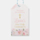 Étiquette de faveur de première sainte communion florale aquarelle rose