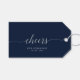 Ajoutez une touche stylée à votre jour spécial avec cette étiquette de cadeau personnalisée. Ce design présente une écriture élégante argentée "cheers" sur fond bleu marine. Vous pouvez personnaliser le texte pour n'importe quel événement ou fête. Des invitations et des fournitures de fête assorties sont disponibles dans ma boutique BaraBomDesign.