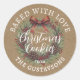 Cette charmante autocollante de style ferme rustique présente une couronne de fêtes classique rouge et verte ainsi que les textes "Cuisinés avec amour" et "Cookies de Noël". Elle est parfaite pour décorer vos cookies à la vanille faits maison, brownies, cookies au sucre, sablés et autres friandises de fêtes ! Le design classique ajoute un attrait intemporel, et vous pouvez personnaliser l'autocollant avec le nom du pâtissier pour un côté personnel. Ces autocollants donneront à vos projets de pâtisserie un aspect unique et professionnel !