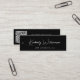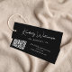 Vêtements, accessoires, bijoux, boutique, étiquette noir élégant et chic, marque de penderie avec une ambiance minimaliste avec votre nom ou marque dans un script design signature blanche et texte supplémentaire ci-dessous si désiré dans une simple typographie blanche moderne. À l'arrière, ajoutez du texte supplémentaire et entrez une adresse URL pour créer un code QR numérisable connecté à votre site Web, portefeuille, profil de médias sociaux, ou toute autre plate-forme qui présente votre travail et vos produits, ce qui facilite l'exploration de votre marque par les clients.