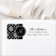 Motif Damas noir et blanc avec votre Monogramme Adresse de retour initiale Étiquette. Utilisez sur vos invitations de mariage et les cartes de remerciements mariages. Customisez avec votre initiale monogramme, nom et adresse. Choisissez aussi la couleur arrière - plan et la couleur monogramme. Copyright Elke Clarke et les concédants.