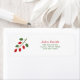 Une étiquette d'adresse de retour avec hanche rose et ses baies rouges illustration et coordonnées en rouge et vert pour la famille, l'agriculteur, les amoureux des baies, etc.