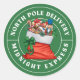 sticker cadeau North Pole Delivery en vert avec le sac magique de Père Noël plein de jouets.