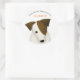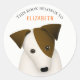 Ces étiquettes de livres pour enfants mignons pour filles ou garçons présentent un numériquement chien Jack Russell avec des oreilles brunes et un carré d'oeil brun, sa tête inclinée sur le côté - texte dit "Ce livre appartient à" - personnaliser le nom de l'enfant - Jack Russell Terrier avec un parement de tête © katz_d_zynes 2019
