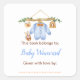 Autocollant pour baby shower rustique avec une ligne de vêtements de bébé mignonne. Parfait pour un baby shower sur le thème de l'automne. Les mots peuvent être modifiés pour s'adapter à vos propres détails ou exigences