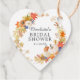 Étiquette de cadeau de douche nuptiale avec une belle couronne de feuilles et de citrouilles aquarelles.