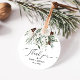 Étiquettes de faveur de mariage de feuillage à feuilles persistantes festive d'hiver