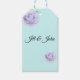 Une charmante étiquette cadeau bleu clair ornée de douces roses lavande et des noms du couple dans une élégante écriture noire, parfaite pour les cadeaux de mariage de printemps ou d'été, les douches de mariage sur le thème du jardin ou les cadeaux de fête personnalisés.