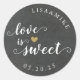 Étiquettes personnalisées pour buffet de bonbons de mariage avec cœur pailleté or et "L'amour est doux" dans un élégant script brossé à la main/calligraphie sur un fond de tableau noir rustique vintage. Personnalisez cette étiquette de mariage avec les noms des mariés et la date du mariage pour un style unique pour vos cadeaux et faveurs de mariage.