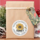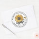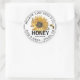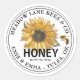 Personnalisez avec votre nom et votre adresse apiaire, produit (miel), poids net et apiculteur. Illustration de tournesol vintage sur un arrière - plan blanc. Abeille de miel réaliste flottant à côté des fleurs.