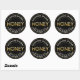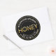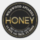 Étiquette votre propre miel, bougies, cire d'abeille et plus encore avec cet autocollant moderne en or noir et métallique. Personnalisez-vous avec votre nom commercial principal en haut et ajoutez-y votre emplacement ou et NET WT en bas. Le mot HONEY est imprimé avec un look surélevé dans une police "ciselée" en or métallique brillant qui semble presque être enduite de miel. Le centre de la lettre "O" à HONEY est rempli de nid d'abeille.