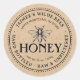 Arrière - plan de couleur Kraft avec une bordure pointillée et votre nom et votre emplacement le long de la courbe supérieure. Poids net en onces et en grammes.