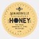 Un étiquette moderne et élégant pour votre miel brut pur avec une bordure d'inspiration hexagonale et logo abeille avec votre nom dans un texte stylisé. Le miel est écrit dans une police intérieure en gras avec un hexagone substitué à la lettre O.