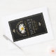 Rectangle noir avec double bordure. Nom de l'abside en texte courbe au-dessus de la photo marguerite. Le pays d'origine écrit au bas du étiquette peut être supprimé.