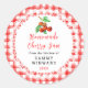Cette autocollant amusant et fantaisiste présente des cerises sur un napperon en dentelle blanche et un fond à carreaux rouges. Il est parfait pour étiqueter vos produits faits maison. Le texte combine une écriture manuscrite et des polices serif pour un look élégant et moderne.