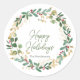 Ce dessin est illustré de feuillage vert et doré, de baies rouges en aquarelle
