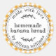 Étiquette autocollante de pain aux bananes fait maison gingham jaune présentant une typographie dessinée à la main en noir sur un centre blanc propre. La disposition ronde classique et le check jaune doux créent une impression chaleureuse et rustique qui se marie parfaitement avec les produits de boulangerie, les cadeaux de cuisine et les friandises faites maison. Personnalisez facilement avec vos détails.