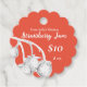 Une étiquette pendante de bocal de conserve avec une tige de fraises illustrée au crayon sur un arrière - plan rouge chaud avec du texte blanc que vous pouvez modifier avec vos détails. Au verso, il y a la coordination de nuances de gris avec un espace pour lister les ingrédients et le texte du site Web que vous pouvez modifier.