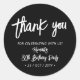 Cette simple étiquette personnalisée de remerciement ajoutera un détail élégant à votre jour spécial. Ce design présente une écriture manuscrite chic "Merci" avec du texte personnalisé. Vous pouvez personnaliser le texte pour n'importe quel événement. Des invitations d'anniversaire et des fournitures de fête pour les étapes importantes sont disponibles dans ma boutique BaraBomDesign.