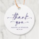 Exprimez votre gratitude avec style grâce à cette étiquette de remerciement de mariage élégante en écriture Navy. Caractérisée par une écriture sophistiquée bleu foncé sur un fond blanc croquant, cette étiquette ajoute une touche raffinée à vos cadeaux de mariage, vos faveurs ou votre décoration de fête. Le dos présente un motif floral bleu délicat, apportant une élégance intemporelle à votre jour spécial. Parfait pour les mariages, les fêtes de fiançailles et les célébrations de fiançailles.