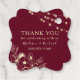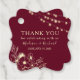 Étiquette de faveur romantique avec un fond bordeaux profond, des guirlandes lumineuses et une dentelle florale dorée. Personnalisez avec vos noms et date pour une touche finale sincère sur les faveurs, les sacs ou les cadeaux de mariage. Parfait pour les célébrations rustiques, automnales ou élégantes.