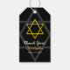 Étiquette de remerciement ou étiquette de cadeau personnalisée pour Bat Miztvah avec étoile de David noire et dorée. Ces étiquettes de faveur de Bar Mitzvah personnalisées présentent une étoile de David juive, le nom et la date. Simple et élégant.