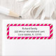 Ajoutez une touche festive et personnalisée à vos envois baby showers avec cette étiquette d'adresse de retour sur le thème du sucre de canne rose. Doté d'une bordure à rayures en diagonale moderne rose, vert et rouge, il est parfait pour les baby showers de vacances ou les fêtes d'hiver. Une façon joyeuse de déguster des enveloppes avec esprit de vacances et charme personnalisé !
