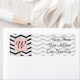 La combinaison classique de noir et blanc est accentuée par des couches de rose rousse dans ce motif chevron tendance et classe avec des couches d'épaisseurs différentes pour briser les choses. Customisez le monogramme et les détails de l'adresse sur ce étiquette de retour pour le rendre unique à vous. Vous pouvez également choisir parmi l'adresse standard et les tailles d'expédition pour le étiquette.