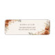 Conçue dans des tons terre cuite chauds et des florales automnales riches, cette étiquette de retour d'adresse élégante est parfaite pour les mariages rustiques, bohémiens ou en plein air. Avec des teintes terreuses et un charme minimaliste, elle apporte une sensation de chaleur et de romantisme à vos enveloppes. Une belle touche finale pour les célébrations inspirées de la nature présentant des palettes de couleurs orange brûlé et argile.