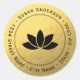 Cette étiquette de adresse circulaire est décorée d'une élégante image de fleur de lotus noir sur un arrière - plan en feuille d'or. Le design circulaire le rend parfait comme joint d'enveloppe.