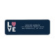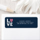Ajoutez un peu d'amour à votre prochain envoi avec ces étiquettes d'adresse de retour. Que vous envoyiez des invitations de mariage ou juste une lettre, ces étiquettes sont pleins d'amour. Ils présentent un graphique audacieux dans un style déprimé qui explique le mot LOVE avec un coeur pour le "O" en blanc et rose contre un arrière - plan bleu marine. Votre nom et votre adresse s'affichent à côté du graphique dans une police de machine à écrire de couleur blanche.