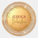 Cette étiquette d'adresse de retour ronde est une petite couronne pour votre courrier, avec un riche arrière - plan en or encadré par une double bordure de pierres précieuses et cristallines. Le design est entièrement personnalisable, avec l'exemple montrant un style à deux polices : un serif bourgeois et audacieux pour le prénom et un script élégant pour le dernier. L'adresse est joliment rangée autour de la frontière intérieure, assurant ainsi lisibilité et une touche de sophistication. Ce étiquette ajoute une finition royale à toute enveloppe, faisant de chaque courrier une déclaration luxueuse.