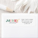 Ces étiquettes d'adresse de retour Joyeux Noël colorées sont parfaites pour une carte de vacances moderne ou une invitation. Le design simple présente une typographie mignonne et amusante avec alternance de lettres de couleur rouge, rose roux, vert émeraude, vert pastel et or jaune.