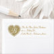 Joli mariage de retour d'étiquettes d'adresse, fait en blanc, avec un coeur de ton or, sur le côté gauche, avec un monogramme d'une lettre blanche. Personnalisez le texte brun doré et le monogramme, selon vos besoins.