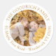 Étiquette simple, minimaliste, ronde, d'adresse de retour photo personnalisée avec nom de famille et votre adresse en police serif ocre classique et élégante. Ajoutez une touche unique à vos lettres de Thanksgiving, salutations ou cadeaux avec ces simples étiquettes de adresse photo. Créez votre propre design unique et personnalisé en un rien de temps et envoyez des voeux d'automne à votre famille et à vos amis. Faites une brise aux enveloppes d'adressage avec des modèles de design de © y.BEE PAPERIE #thanksgivingaddress label #roundaddress #photoadresslabel #zazzlemade