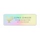 Un retour simple mais agréable personnalisé adresse de retour label en mermaid rainbow dégradé couleurs ombres et un minimum de simples raquettes dorées et balle de tennis. Tennis racquet thème retour adresse design de l'étiquette.