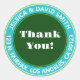 Étiquette de retour rétro bleu vert et blanc Merci