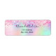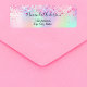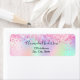 Un arrière-plan holographique tendance avec des couleurs de licorne et des couleurs arc-en-ciel en rose, violet, vert menthe. Décoré de fausses paillettes roses. Personnalisez et ajoutez votre nom et adresse. Parfait pour les invitations à une douche de mariée, une baby shower ou une fête d'anniversaire.