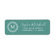Étiquettes d'adresse de retour monogramme modernes avec facile à personnaliser modèle - Une silhouette de couronne blanche entourant un simple monogramme sur un arrière - plan vert turquoise. Le modèle de votre nom est dans un script de calligraphie chic et l'adresse est écrite dans une police simple. Des étiquettes d'adresse de retour personnalisées avec une couronne et un monogramme féminins ajoutent une touche propre et personnelle à votre courrier. Pour modifier la couleur arrière - plan, les styles et les tailles de police, cliquez sur le bouton Personnaliser.
