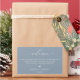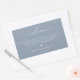 Elégant et moderne mariage invité étiquette de sac de bienvenue. Le modèle fournit des lignes pour votre message, vos noms et la date de l'événement. Typographie blanche sur arrière - plan bleu poussiéreux.