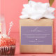 Elégant et moderne mariage invité étiquette de sac de bienvenue. Le modèle fournit des lignes pour votre message, vos noms et la date de l'événement. Typographie blanche sur lavande violet arrière - plan couleur.