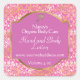 Étiquette de produit avec un motif damassé rose dans l'arrière - plan. A de l'espace pour votre logo et votre site web.