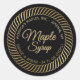Bordure importante avec gradient or métallique sur arrière - plan noir. "Sirop d'érable" est écrit dans une police de caractères élégante et le texte descriptif est écrit dans une serif moderne et sophistiquée. Choisissez votre volume dans une liste de tailles communes précalculées.
