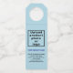 Étiquette de suspension de bouteille comme matériel d'emballage pour vos produits liquides en bouteille à vendre tels que l'eau, le lait, le soda, le cidre, la bière, le vin, d'autres boissons alcoolisées et d'autres boissons. Personnalisez-la pour faire de la publicité pour votre entreprise ou promouvoir votre nom de marque auprès des clients. Étiquette de suspension de bouteille avec le nom de votre entreprise pour renforcer la notoriété de la marque. La couleur est bleu clair et les couleurs de police sont bleu foncé et noir. Pour personnaliser cette étiquette de suspension de bouteille, téléchargez votre photo de produit ou le logo de votre entreprise, tapez le nom de votre produit, le nom de votre entreprise ou société, l'adresse, le numéro de téléphone, l'e-mail et le site web ou la page des médias sociaux. Veuillez vérifier l'apparence après avoir téléchargé le logo et saisi les textes. Si l'apparence vous convient, vous pouvez passer votre commande maintenant. Si vous devez redimensionner et déplacer le logo et les textes pour