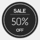 Ces autocollants minimaux de vente noire sont personnalisables. Vous pouvez modifier le pourcentage de réduction comme vous le souhaitez. Le style minimaliste noir est plus approprié lorsque vous avez déjà une marque existante mais en besoin de stickers de vente.