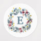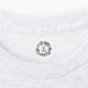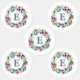 Étiquettes de vêtements monogrammes encadrés de fleurs en gris, bleu, jaune et rose sur un arrière - plan blanc.