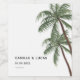 Étiquette de vin de mariage tropical avec illustration de palmier. L'invitation de mariage tropical simple se retourne pour afficher un fond vert uni. Conçue pour coordonner avec notre collection de mariage Minimal Palm Tree.