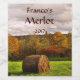 Personnalisez facilement le texte sur ce magnifique étiquette de bouteille de vin rouge qui dispose d'un beau paysage d'automne dans des couleurs saisonnières de feuillage d'automne rouge, orange, jaune, marron et vert. Une tempête est passée et le soleil traverse les nuages sur un terrain de pelouse avec des balles rondes de foin.