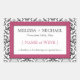 Étiquettes de vin tendance et moderne pour votre Mariage. Dispose d'une conception/illustration cousue rose foncé sur un motif damassé noir et blanc.